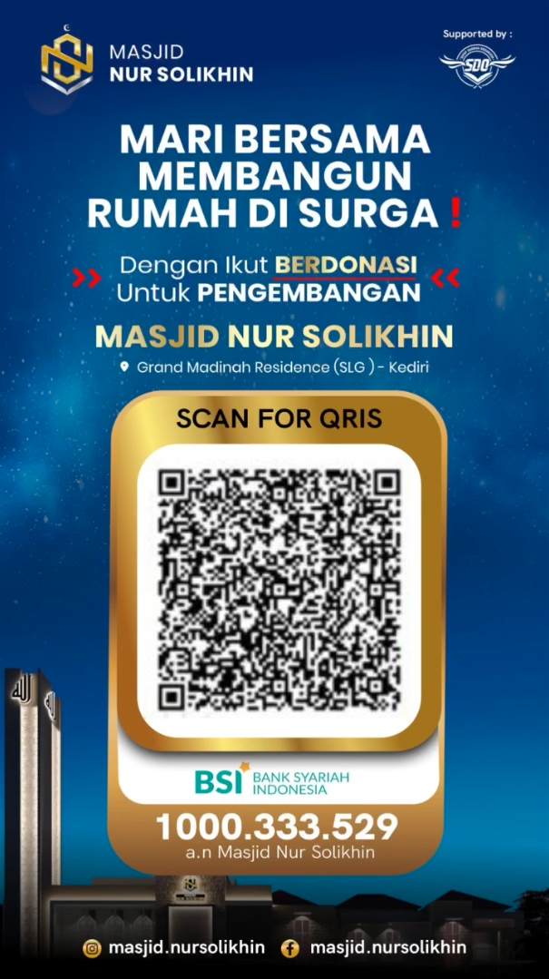 Scan QRIS Masjid Nur Solikhin untuk ikut jadi bagian wakaf Masjid Nur Solikhin